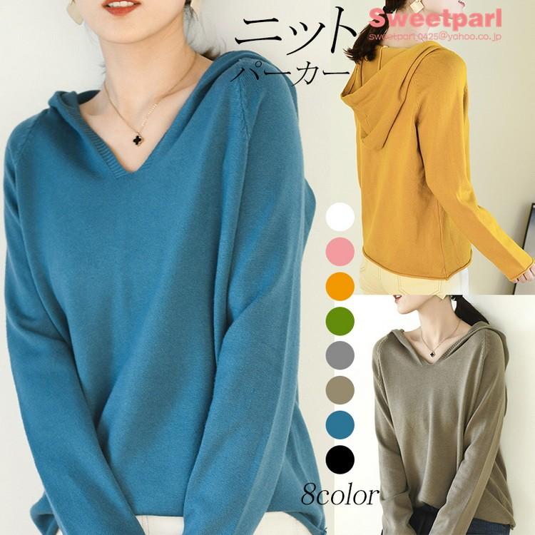 ニットパーカー レディース パーカー プルオーバー 長袖パーカー ニット 無地 Vネック フード トップス 春服 母の日 B Sweet Parl 通販 Yahoo ショッピング